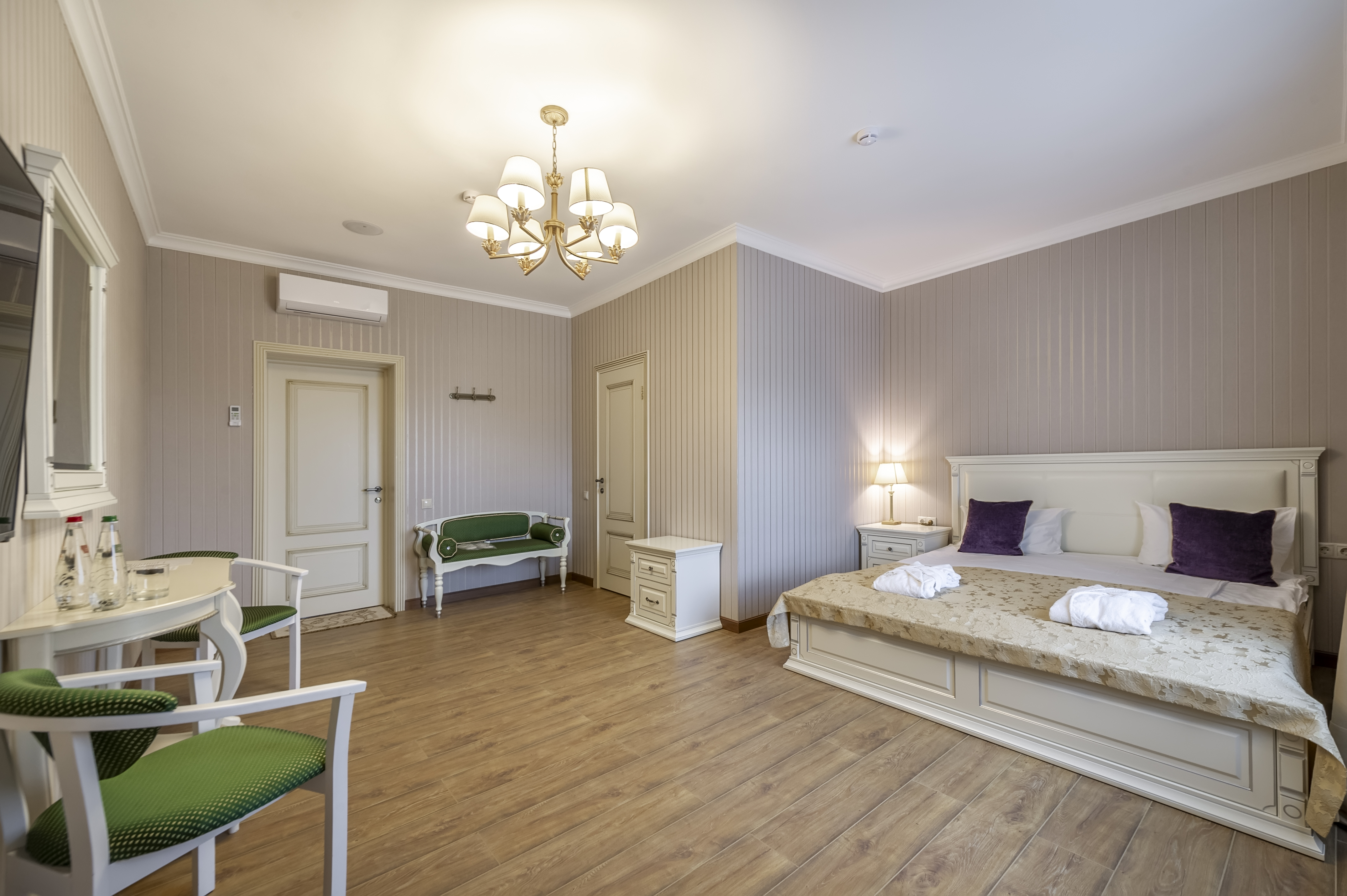 Номера оформлены в спокойных пастельных тонах, создающих атмосферу уюта и расслабления. Подходят для размещения одного, двух или трёх гостей, а также идеально подойдут для пар или небольших семей.